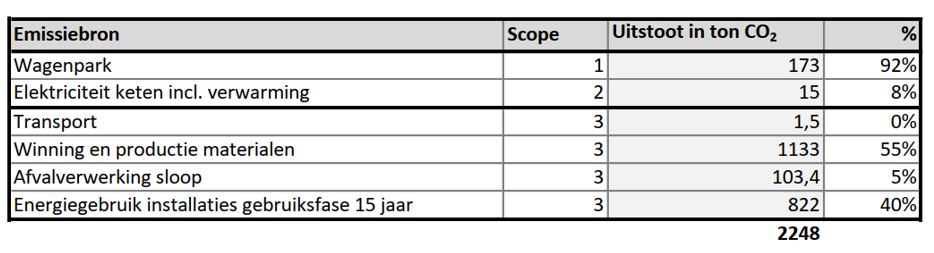 Initieel is een CO2-uitstoot bepaald van 2.248 ton.